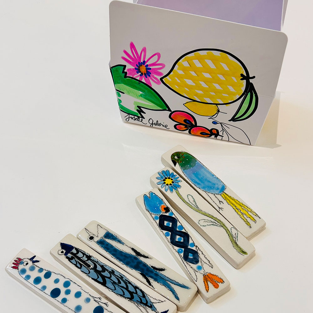 * Possibilité de faire de la personnalisation (couleur, motif, mot) sur commande auprès de Josette Galerie